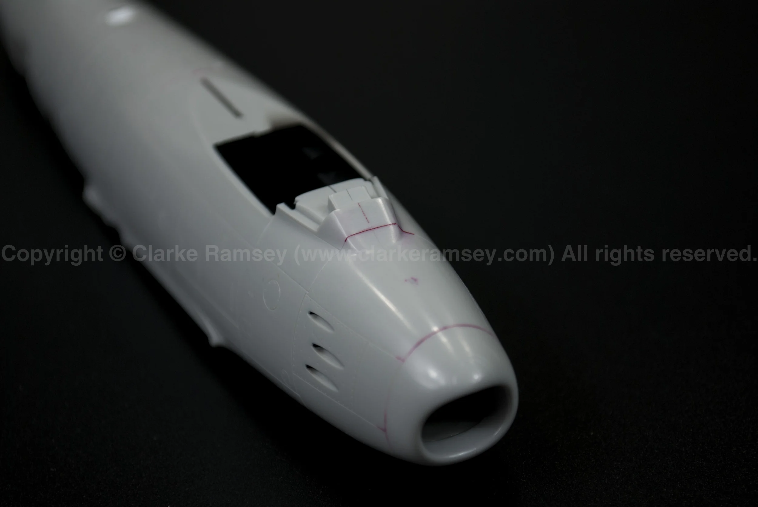 I had to remove some of the detail on the forward base of the windscreen to ensure that a clean seam line will be present. It will be added once the canopy is fitted.